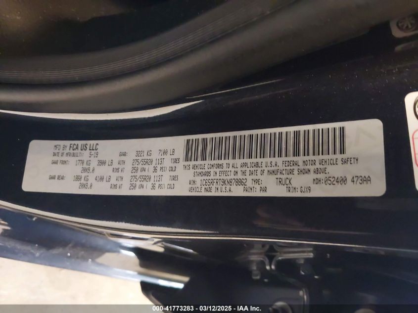 2019 RAM 1500 2019 року Бензин, 5.7, Полный привод, vin - 1C6SRFRT9KN****** из США