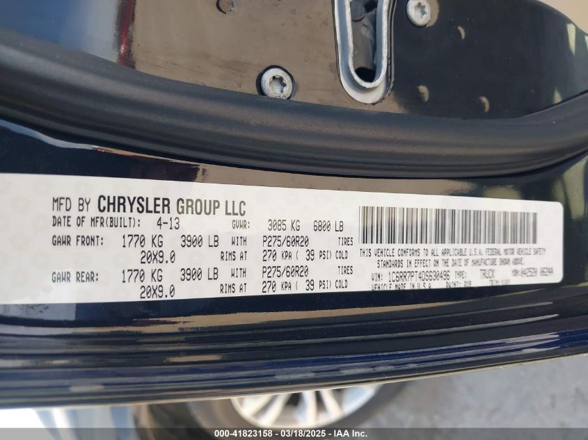 Цвет ЧерныйЦилиндры 8Привод Полный приводVIN 1C6RR7PT4DS******Состояние НеизвестноПовреждения Из-за непогоды