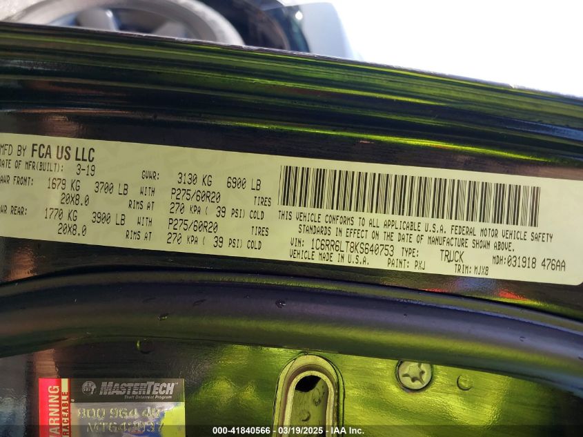 2019 RAM 1500 2019 року Бензин, 5.7, Неизвестно, vin - 1C6RR6LT8KS****** из США