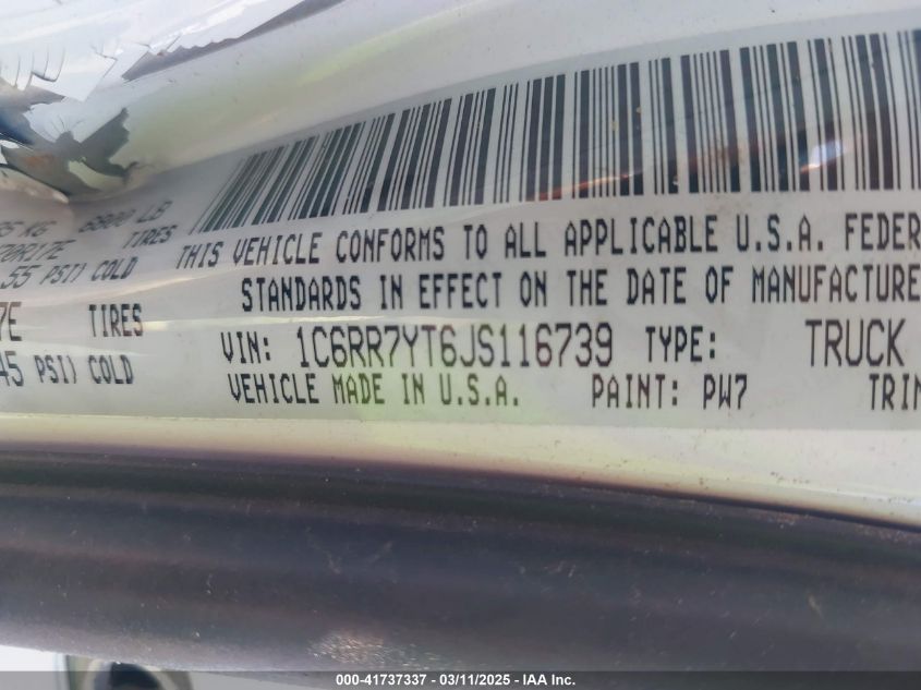 Цвет БелыйЦилиндры 8Привод Полный приводVIN 1C6RR7YT6JS******Состояние НеизвестноПовреждения Задняя левая AutoRIA