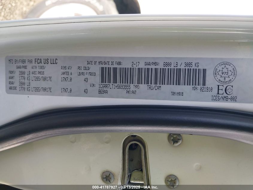 Цвет БелыйЦилиндры 8Привод Полный приводVIN 1C6RR7LT1HS******Состояние НеизвестноПовреждения Задняя AutoRIA
