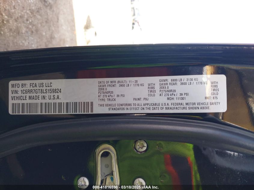 2020 RAM 1500 2020 року Бензин, 5.7, Полный привод, vin - 1C6RR7GT8LS****** из США