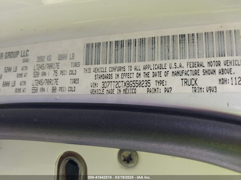 Цвет БелыйЦилиндры 8Привод Полный приводVIN 3D7TT2CTXBG******Состояние НеизвестноПовреждения Незначительные
