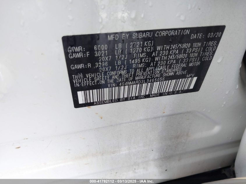 2020 SUBARU ASCENT 2020 року Бензин, 2.4, Полный привод, vin - 4S4WMARD3L3****** из США