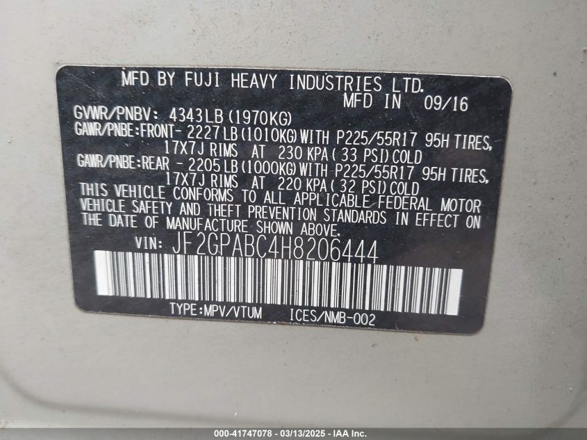Цвет СерыйЦилиндры 4Привод Полный приводVIN JF2GPABC4H8******Состояние НеизвестноПовреждения Передняя левая AutoRIA