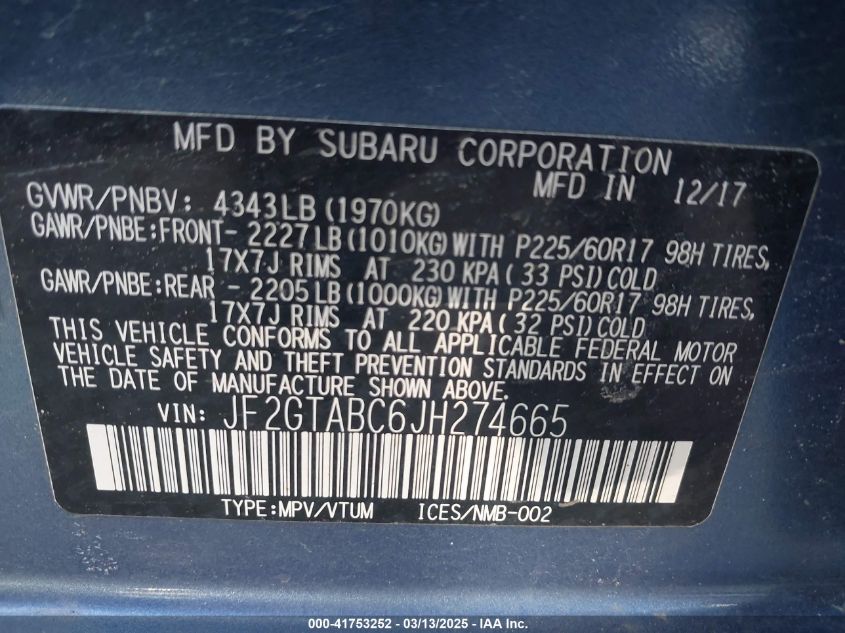 2018 SUBARU CROSSTREK 2018 року Бензин, 2.0, Полный привод, vin - JF2GTABC6JH****** из США