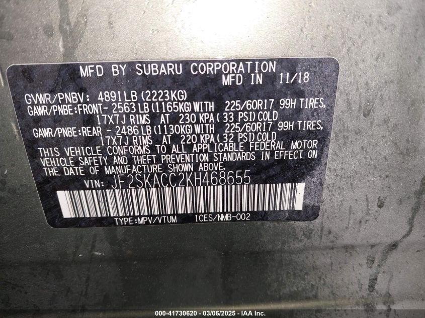2019 SUBARU FORESTER 2019 року Бензин, 2.5, Полный привод, vin - JF2SKACC2KH****** из США