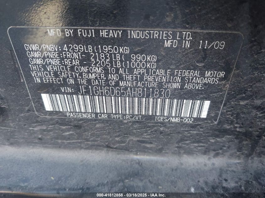 2010 SUBARU IMPREZA 2010 року Бензин, 2.5, Полный привод, vin - JF1GH6D65AH****** из США