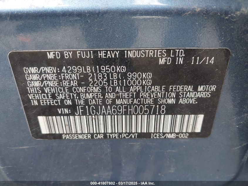 2015 SUBARU IMPREZA 2015 року Бензин, 2.0, Полный привод, vin - JF1GJAA69FH****** из США