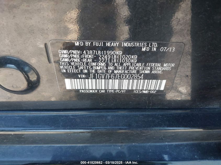 2014 SUBARU IMPREZA 2014 року Бензин, 2.5, Полный привод, vin - JF1GV7F67EG****** из США