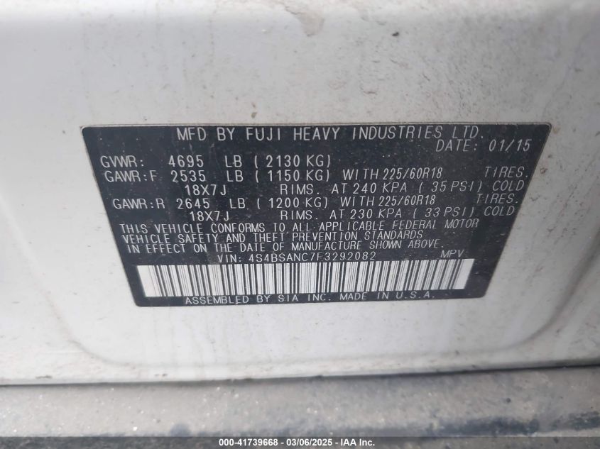 2015 SUBARU OUTBACK 2015 року Бензин, 2.5, Полный привод, vin - 4S4BSANC7F3****** из США