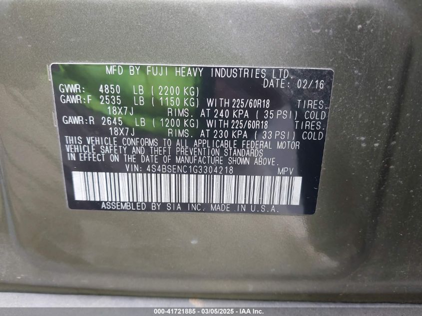 Цвет ЗеленыйЦилиндры 6Привод Полный приводVIN 4S4BSENC1G3******Состояние НеизвестноПовреждения Передняя или задняя AutoRIA