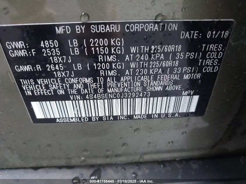 2018 SUBARU OUTBACK 2018 року Бензин, 3.6, Полный привод, vin - 4S4BSENC0J3****** из США