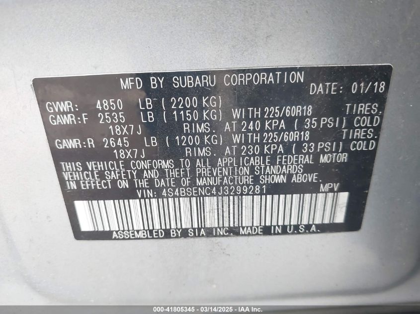 Цвет СерыйЦилиндры 6Привод Полный приводVIN 4S4BSENC4J3******Состояние НеизвестноПовреждения Передняя или задняя AutoRIA