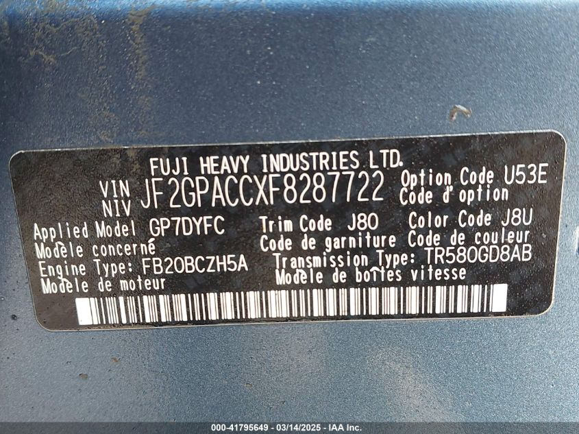 2015 SUBARU XV 2015 року Бензин, 2.0, Полный привод, vin - JF2GPACCXF8****** из США