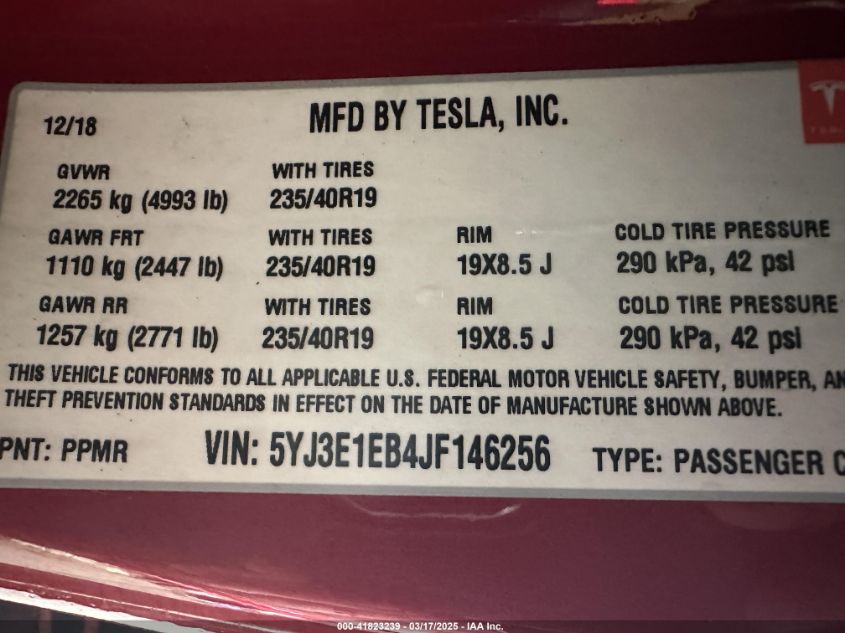 2018 TESLA MODEL 3 2018 року Электрический, U, Полный привод, vin - 5YJ3E1EB4JF****** из США