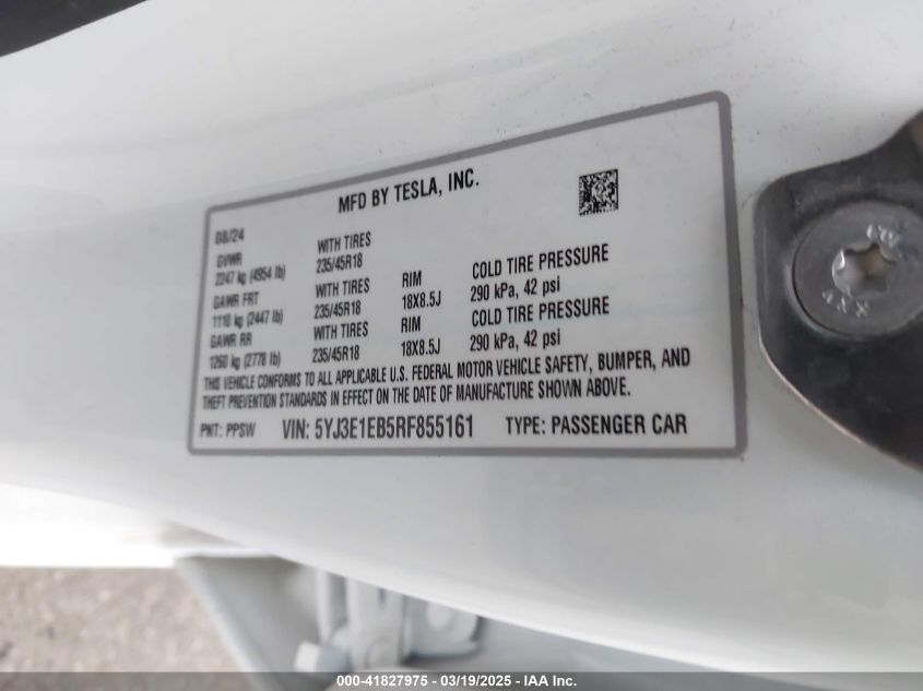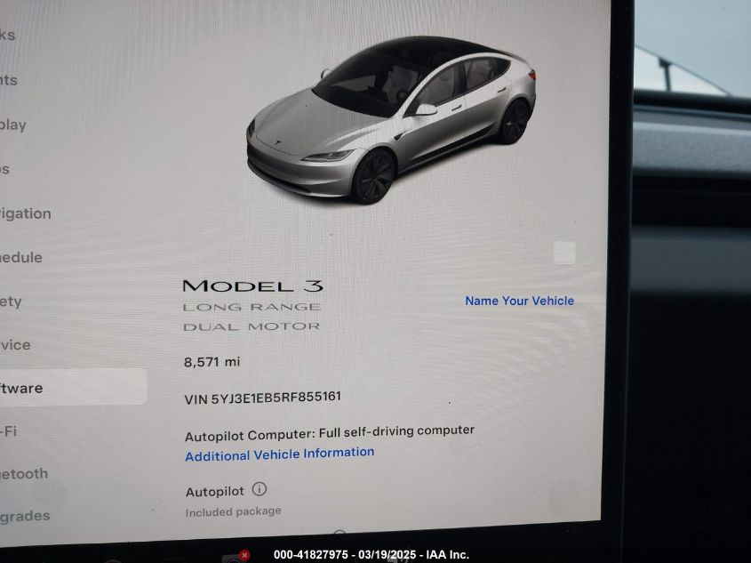 2024 TESLA MODEL 3 2024 року Электрический, U, Полный привод, vin - 5YJ3E1EB5RF****** из США
