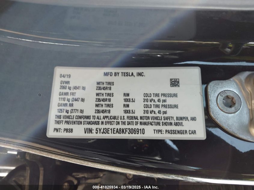 2019 TESLA MODEL 3 2019 року Электрический, U, Задний привод, vin - 5YJ3E1EA8KF****** из США