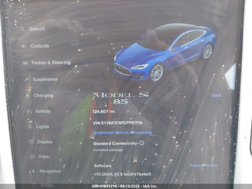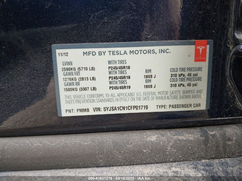2012 TESLA MODEL S 2012 року Электрический, U, Задний привод, vin - 5YJSA1CN1CF****** из США