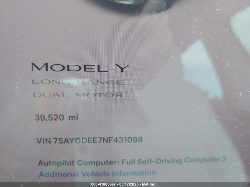 2022 TESLA MODEL Y 2022 року Электрический, U, Полный привод, vin - 7SAYGDEE7NF****** из США