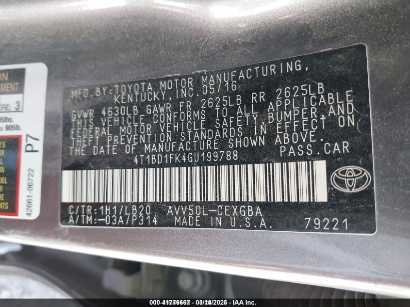 2016 TOYOTA CAMRY HYBRID 2016 року Гибрид, 2.5, Передний привод, vin - 4T1BD1FK4GU****** из США
