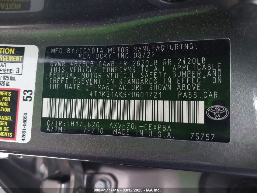2023 TOYOTA CAMRY HYBRID 2023 року Гибрид, 2.5, Передний привод, vin - 4T1K31AK9PU****** из США