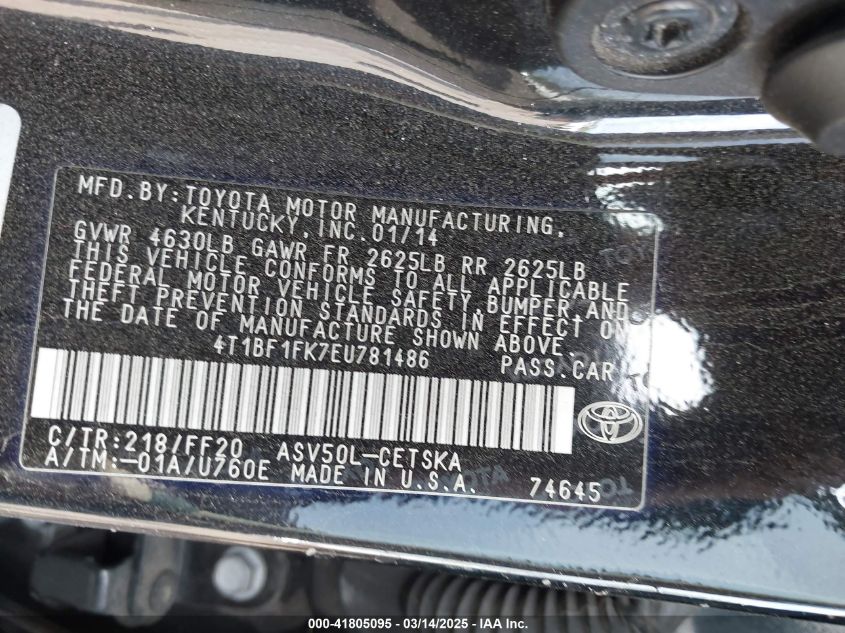 2014 TOYOTA CAMRY 2014 року Бензин, 2.5, Передний привод, vin - 4T1BF1FK7EU****** из США