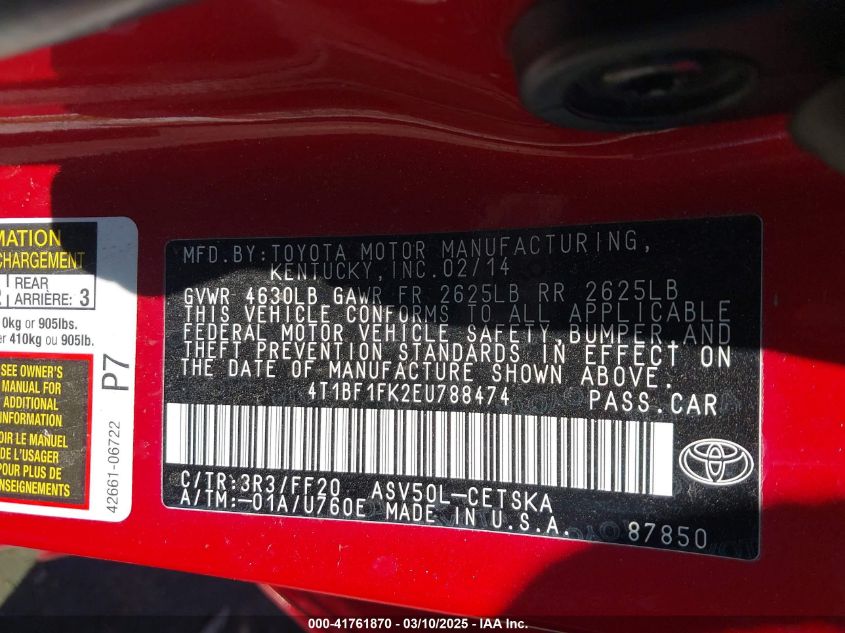 2014 TOYOTA CAMRY 2014 року Бензин, 2.5, Передний привод, vin - 4T1BF1FK2EU****** из США