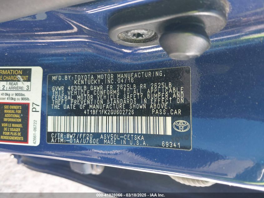 2016 TOYOTA CAMRY 2016 року Бензин, 2.5, Передний привод, vin - 4T1BF1FK2GU****** из США