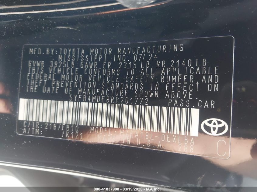 2024 TOYOTA COROLLA 2024 року Бензин, 2.0, Передний привод, vin - 5YFB4MDE8RP****** из США