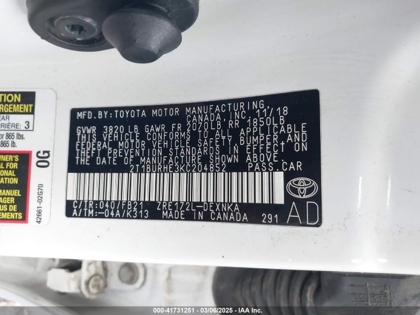 2019 TOYOTA COROLLA 2019 року Бензин, 1.8, Передний привод, vin - 2T1BURHE3KC****** из США