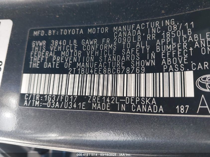 2011 TOYOTA COROLLA 2011 року Бензин, 1.8, Передний привод, vin - 2T1BU4EE8BC****** из США