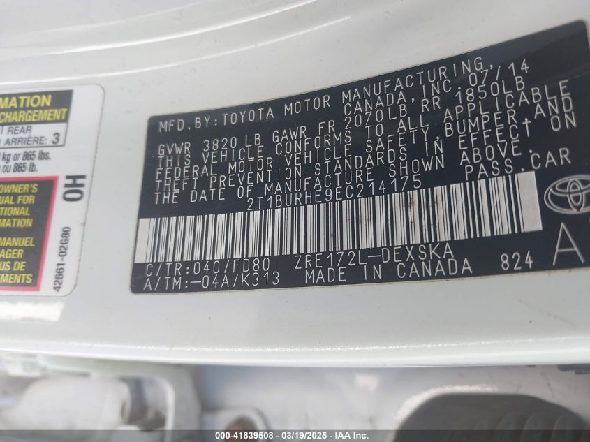 2014 TOYOTA COROLLA 2014 року Бензин, 1.8, Передний привод, vin - 2T1BURHE9EC****** из США