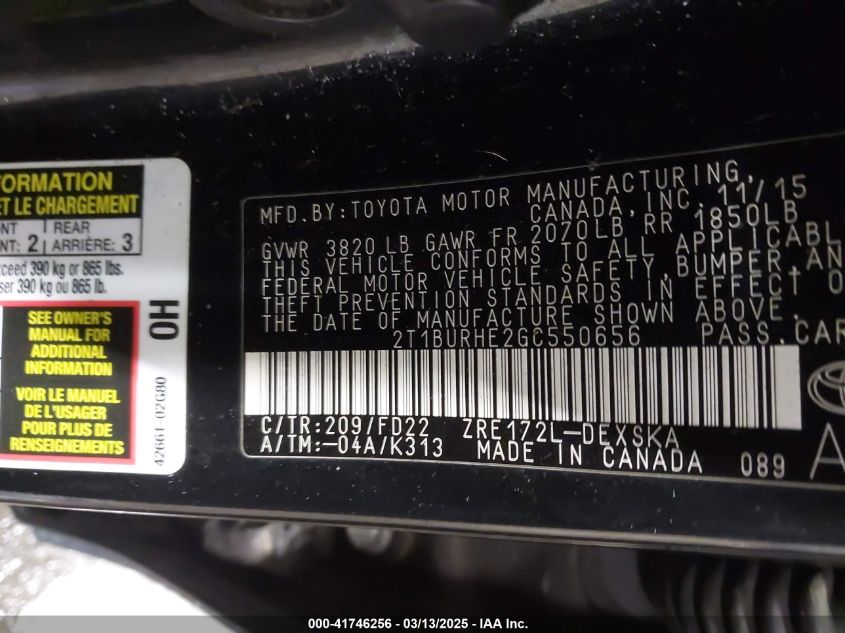 2016 TOYOTA COROLLA 2016 року Бензин, 1.8, Передний привод, vin - 2T1BURHE2GC****** из США