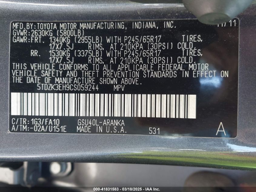 Цвет СерыйЦилиндры 6Привод Передний приводVIN 5TDZK3EH9CS******Состояние НеизвестноПовреждения Передняя или задняя AutoRIA