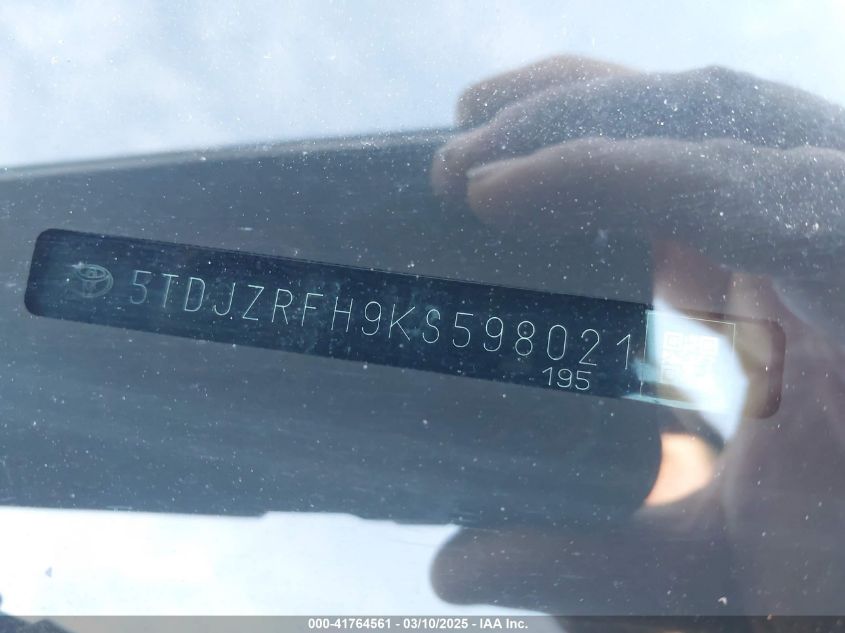 2019 TOYOTA HIGHLANDER 2019 року Бензин, 3.5, Полный привод, vin - 5TDJZRFH9KS****** из США