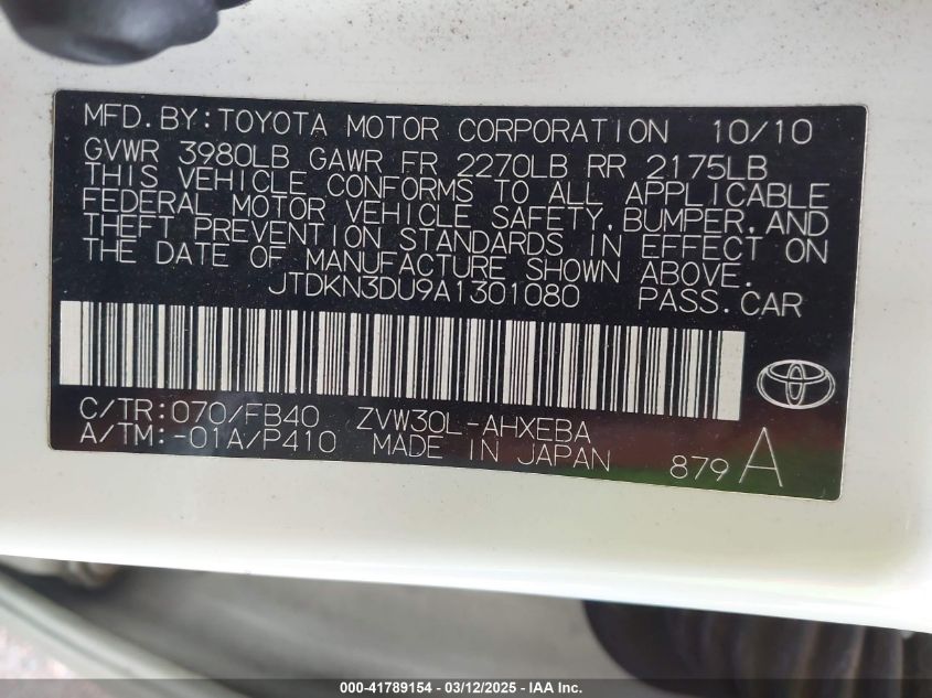 Цвет БелыйЦилиндры 4Привод Передний приводVIN JTDKN3DU9A1******Состояние НеизвестноПовреждения НезначительныеДата аукциона 2025-03-25 AutoRIA