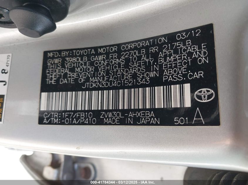 2012 TOYOTA PRIUS 2012 року Гибрид, 1.8, Передний привод, vin - JTDKN3DU4C1****** из США