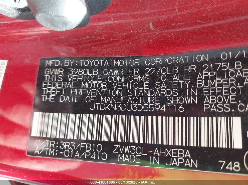 Цвет КрасныйЦилиндры 4Привод Передний приводVIN JTDKN3DU3D5******Состояние НеизвестноПовреждения Передняя и задняяДата аукциона 2025-03-25 AutoRIA