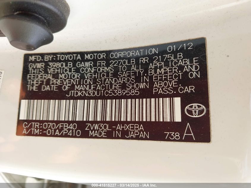 Цвет БелыйЦилиндры 4Привод Передний приводVIN JTDKN3DU1C5******Состояние НеизвестноПовреждения НезначительныеДата аукциона 2025-03-20 AutoRIA