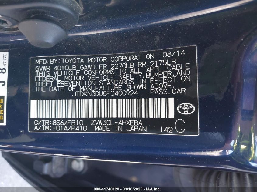 Цвет СинийЦилиндры 4Привод Передний приводVIN JTDKN3DU8F0******Состояние НеизвестноПовреждения По бокам AutoRIA