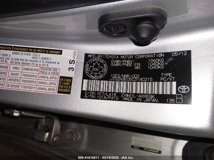 2012 TOYOTA PRIUS V 2012 року Гибрид, 1.8, Передний привод, vin - JTDZN3EU5C3****** из США