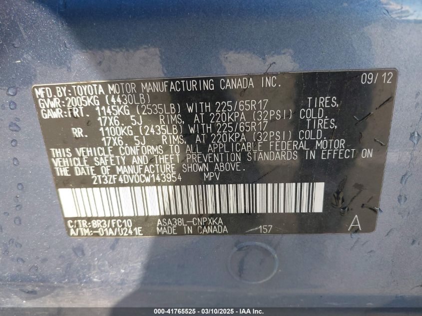 2012 TOYOTA RAV4 2012 року Бензин, 2.5, Передний привод, vin - 2T3ZF4DV0CW****** из США