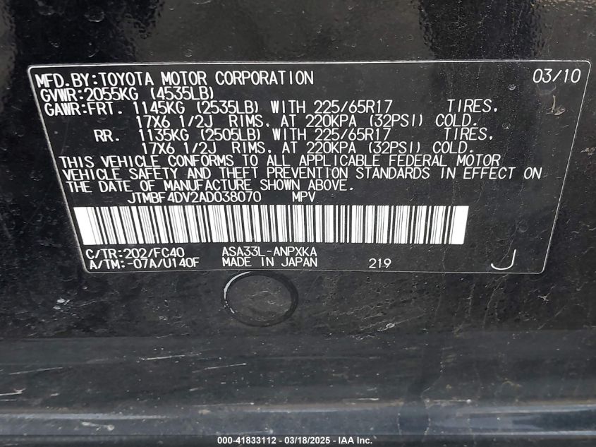 2010 TOYOTA RAV4 2010 року Бензин, 2.5, Полный привод, vin - JTMBF4DV2AD****** из США