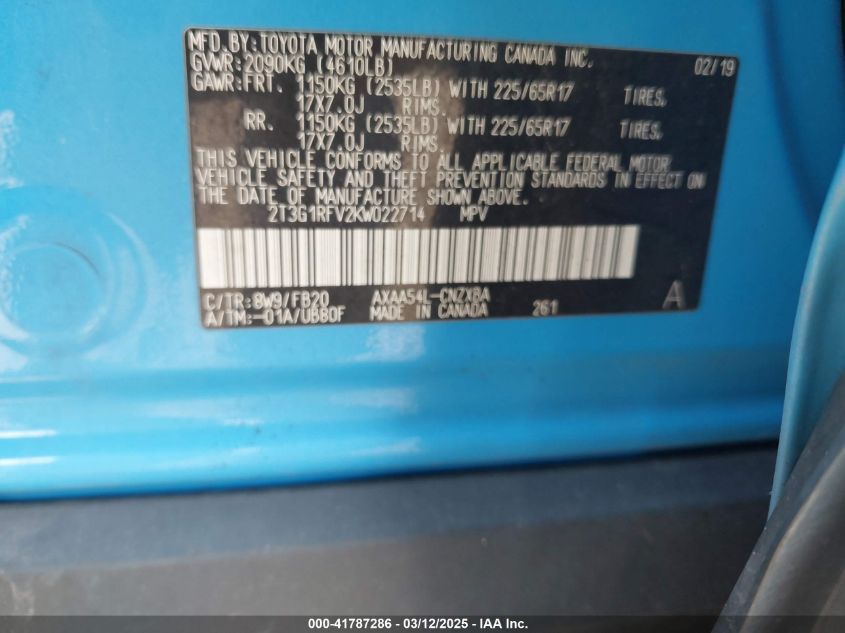 2019 TOYOTA RAV4 2019 року Бензин, 2.5, Полный привод, vin - 2T3G1RFV2KW****** из США
