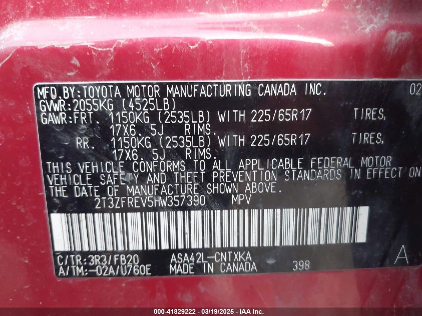 2017 TOYOTA RAV4 2017 року Бензин, 2.5, Передний привод, vin - 2T3ZFREV5HW****** из США
