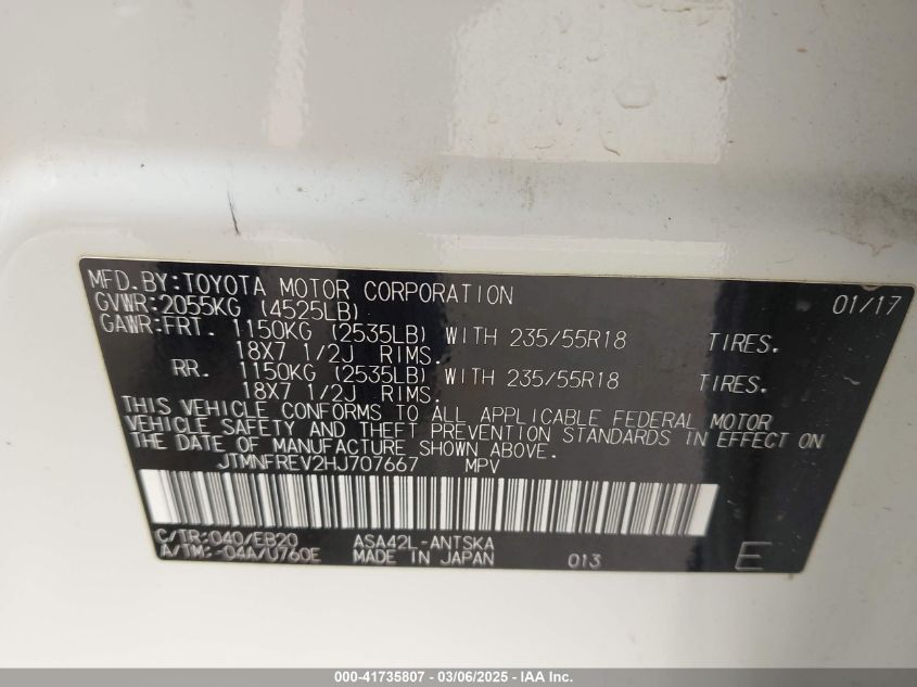 2017 TOYOTA RAV4 2017 року Бензин, 2.5, Передний привод, vin - JTMNFREV2HJ****** из США
