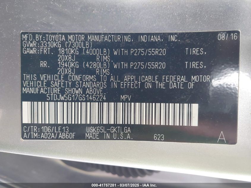 2016 TOYOTA SEQUOIA 2016 року Бензин, 5.7, Полный привод, vin - 5TDJW5G17GS****** из США