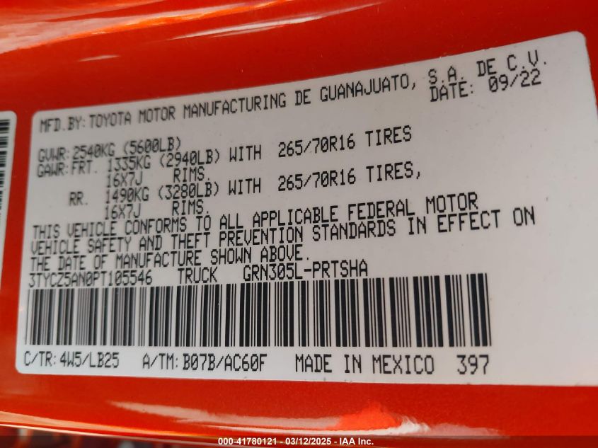 Цвет АпельсиновыйЦилиндры 6Привод Полный приводVIN 3TYCZ5AN0PT******Состояние НеизвестноПовреждения По всему авто