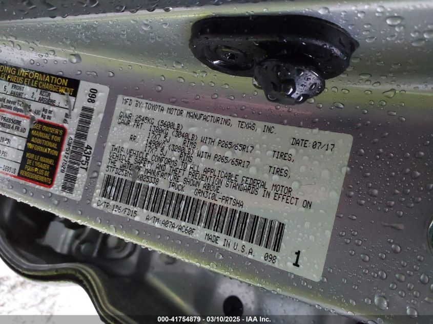 2017 TOYOTA TACOMA 2017 року Бензин, 3.5, Полный привод, vin - 5TFDZ5BN6HX****** из США